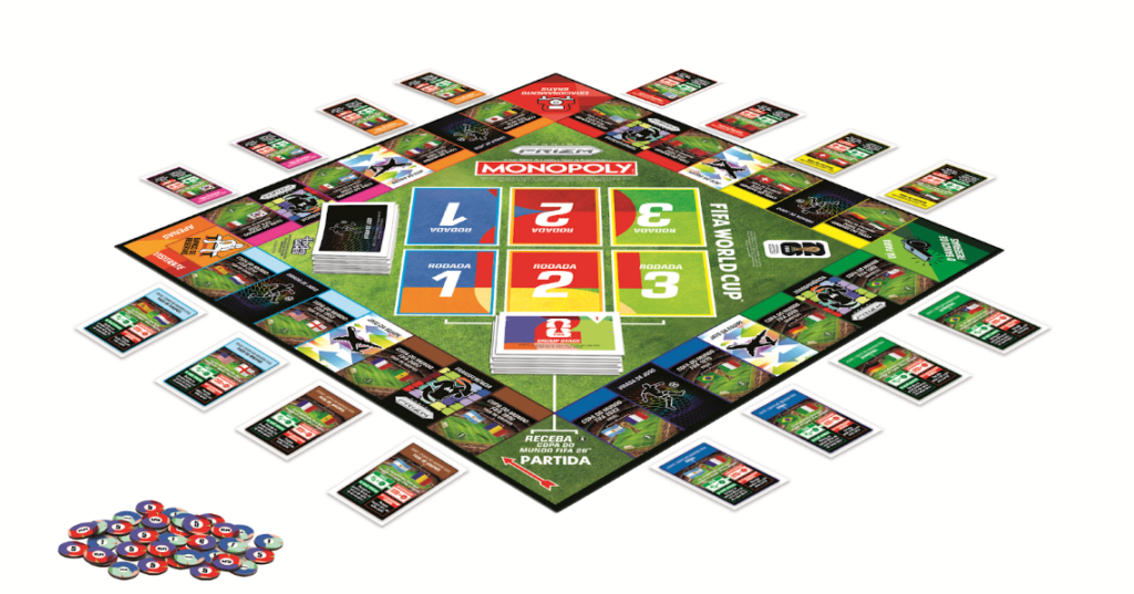 A proposta reinventa o formato tradicional de Monopoly. Em vez de comprar propriedades, os jogadores montam times de futebol com estrelas atuais e lendas da Copa. Dessa forma, cada partida se transforma em uma competição esportiva estratégica.